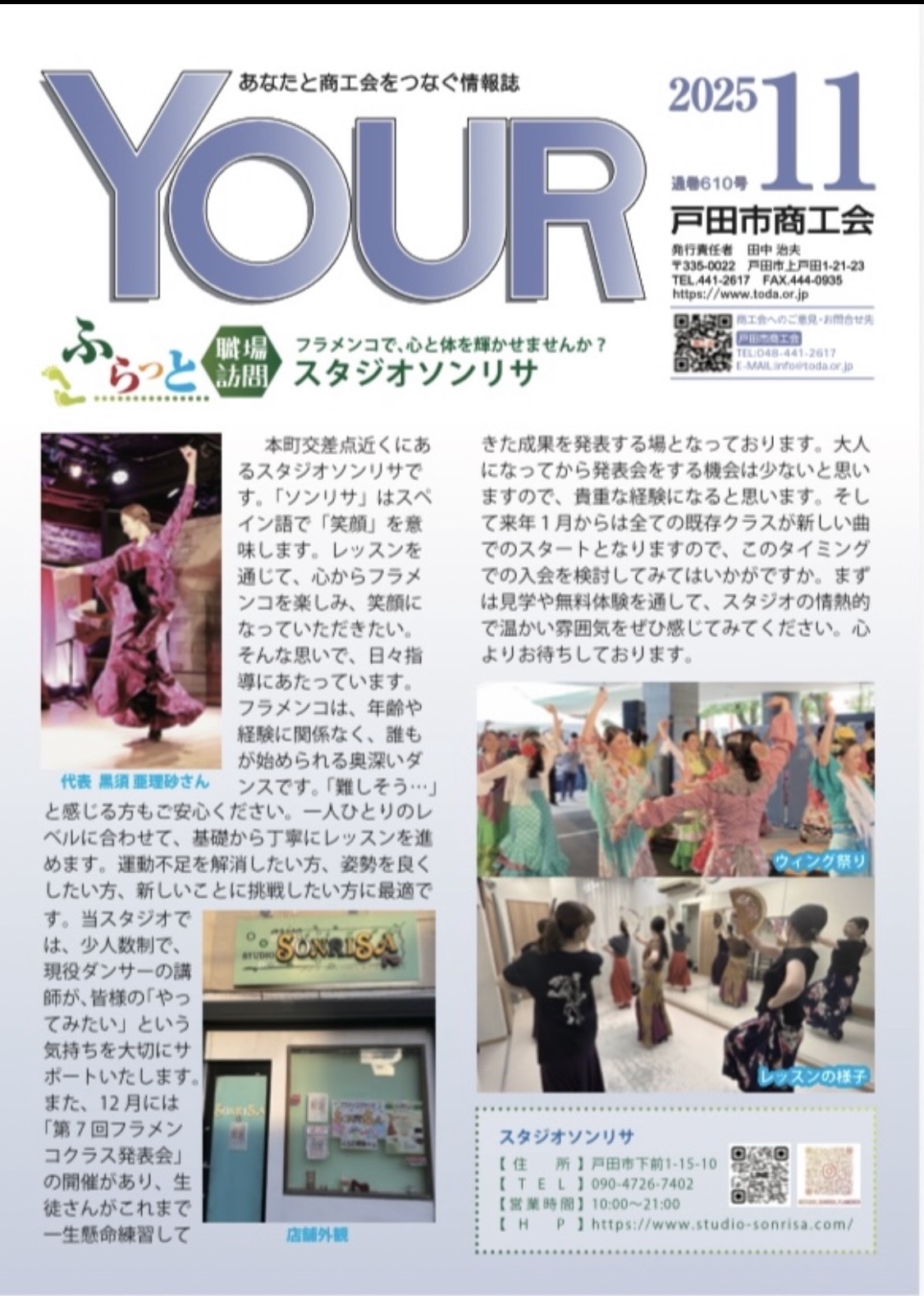 戸田市商工会議所の冊子ユアー11月号に掲載していただきました!